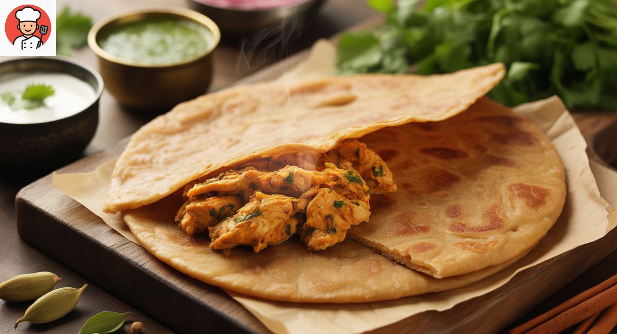The recipe is simple and made with ingredients you already have in your kitchen. The chicken filling is flavorful with a mix of spices and herbs, and the paratha adds the perfect crunch. can serve it with chutney, raita, or ketchup for a tasty meal.